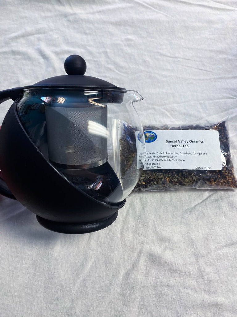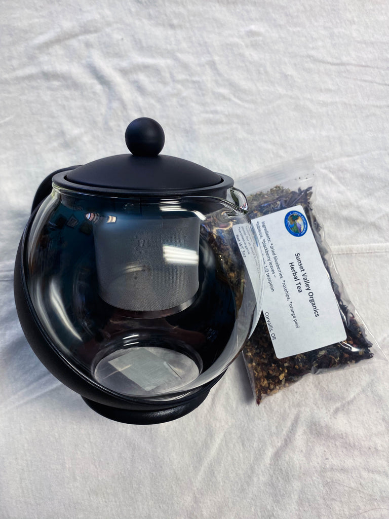 Get our tea and a tea pot! This set makes a great gift for anytime of the year!